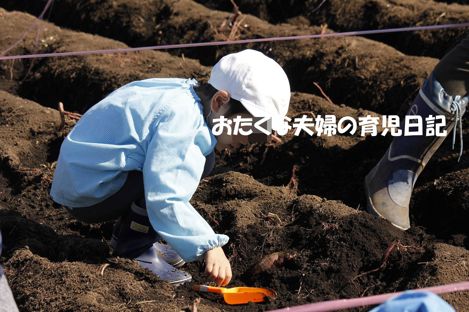 息子、おいもほり