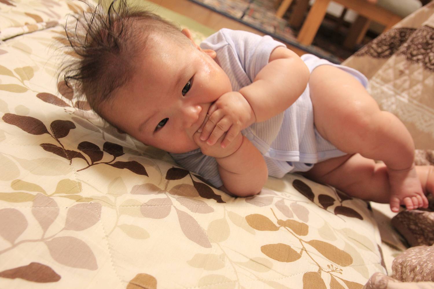 【次男】先天性股関節脱臼検診と寝返り、あと長男のお迎え